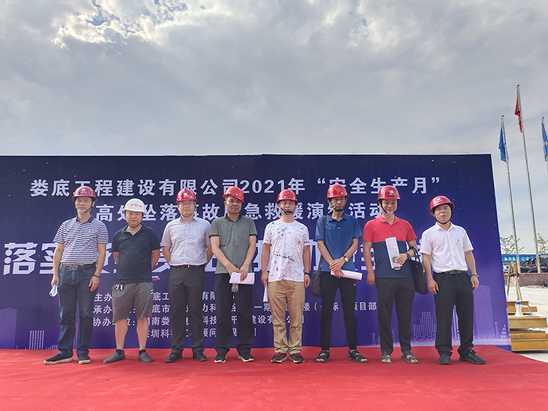 為進(jìn)一步提高公司安全管理水平,規(guī)范公司安全生產(chǎn)過(guò)程的管理工作,本著"安全第一、預(yù)防為主、綜合治理"的安全管理方針。 加強(qiáng)建筑工地應(yīng)對(duì)突發(fā)事件的處理能力,提高全員安全意識(shí),切實(shí)掌握應(yīng)急救援的的技能、技巧,讓員工在事故發(fā)生時(shí)將傷害減少到最低,同時(shí)為響應(yīng)“學(xué)黨史,辦實(shí)事”的精神,公司和公司黨支部特組織了一次高處墜落事故應(yīng)急救援演練活動(dòng)。婁底經(jīng)開(kāi)區(qū)住建局童韜先生、李愛(ài)民先生、李俊先生、雷海仁先生,建設(shè)單位現(xiàn)場(chǎng)負(fù)責(zé)人曾彪先生,監(jiān)理單位總監(jiān)柯又華先生,婁底工程建設(shè)有限公司副總經(jīng)理彭洪偉、顏克靈出席了本次演練活動(dòng),婁底市生態(tài)電力科技谷A區(qū)一期一標(biāo)項(xiàng)目部全體人員,公司各在建項(xiàng)目負(fù)責(zé)人、關(guān)鍵崗位人員參加了此次演練活動(dòng)。