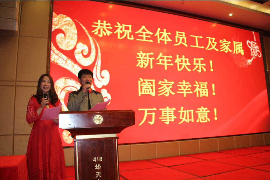 主持人羅堅(jiān)、鄧迎雨向全體員工家屬祝賀新年