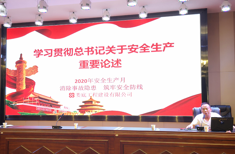 為貫徹《湖南省住房和城鄉(xiāng)建設廳關(guān)于開展2020年建筑施工“安全生產(chǎn)月”和“安全生產(chǎn)三湘行”活動的通知》(湘建建函[2020]69號)、《婁底市住房和城鄉(xiāng)建設局(市人民防空辦公室)安全生產(chǎn)委員會關(guān)于開展2020年建筑施工“安全生產(chǎn)月”活動的通知》(婁建安委發(fā)[2020]5號)要求,深入學習貫徹習近平總書記關(guān)于安全生產(chǎn)重要論述,牢固樹立安全發(fā)展理念,堅持“安全第一、預防為主、綜合治理”的安全總方針,進一步加強公司安全生產(chǎn)管理工作,營造安全生產(chǎn)良好氛圍,公司于2020年6月10日19點組織各部門和項目部人員在會議室舉行以“消除事故隱患,筑牢安全防線”為主題的“安全生產(chǎn)月”活動宣貫會。會議由總工程師李偉主持,公司總經(jīng)理胡勁、副總經(jīng)理彭洪偉、顏克靈出席了本次會議并講話。